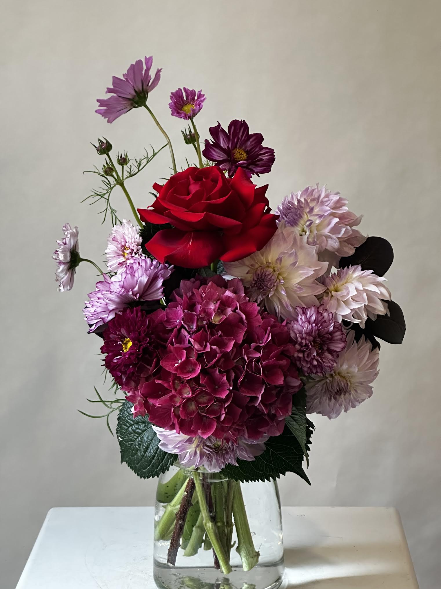 The image provided is for colour and style inspiration for your arrangement. Flower variety and colour tones will depend on season and market availability. Please trust us to select the most beautiful flowers available on your behalf.