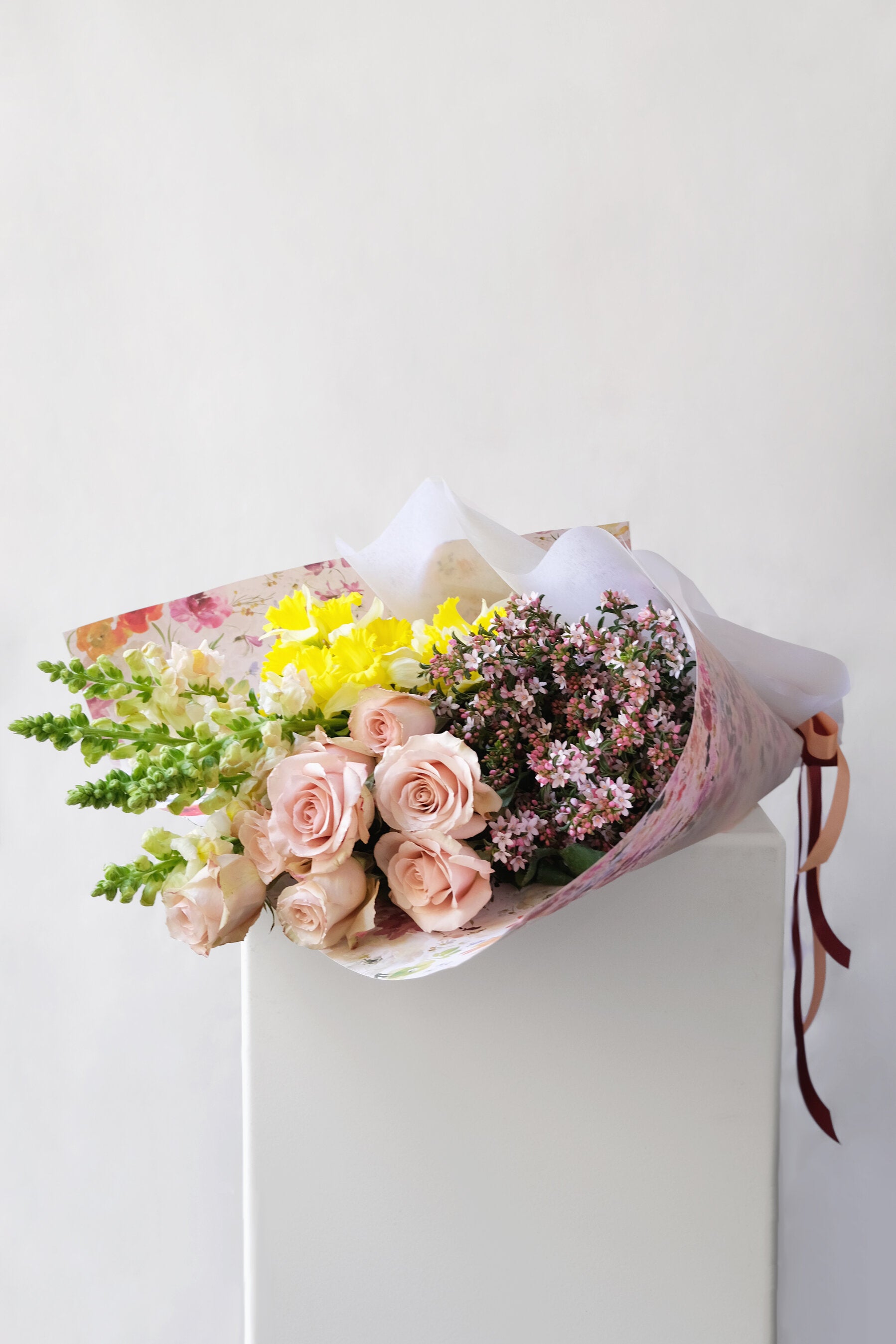The image provided is for colour and flower inspiration. Colour tones and varieties will depend on market availability. Please trust us to select the most beautiful flowers available on your behalf.