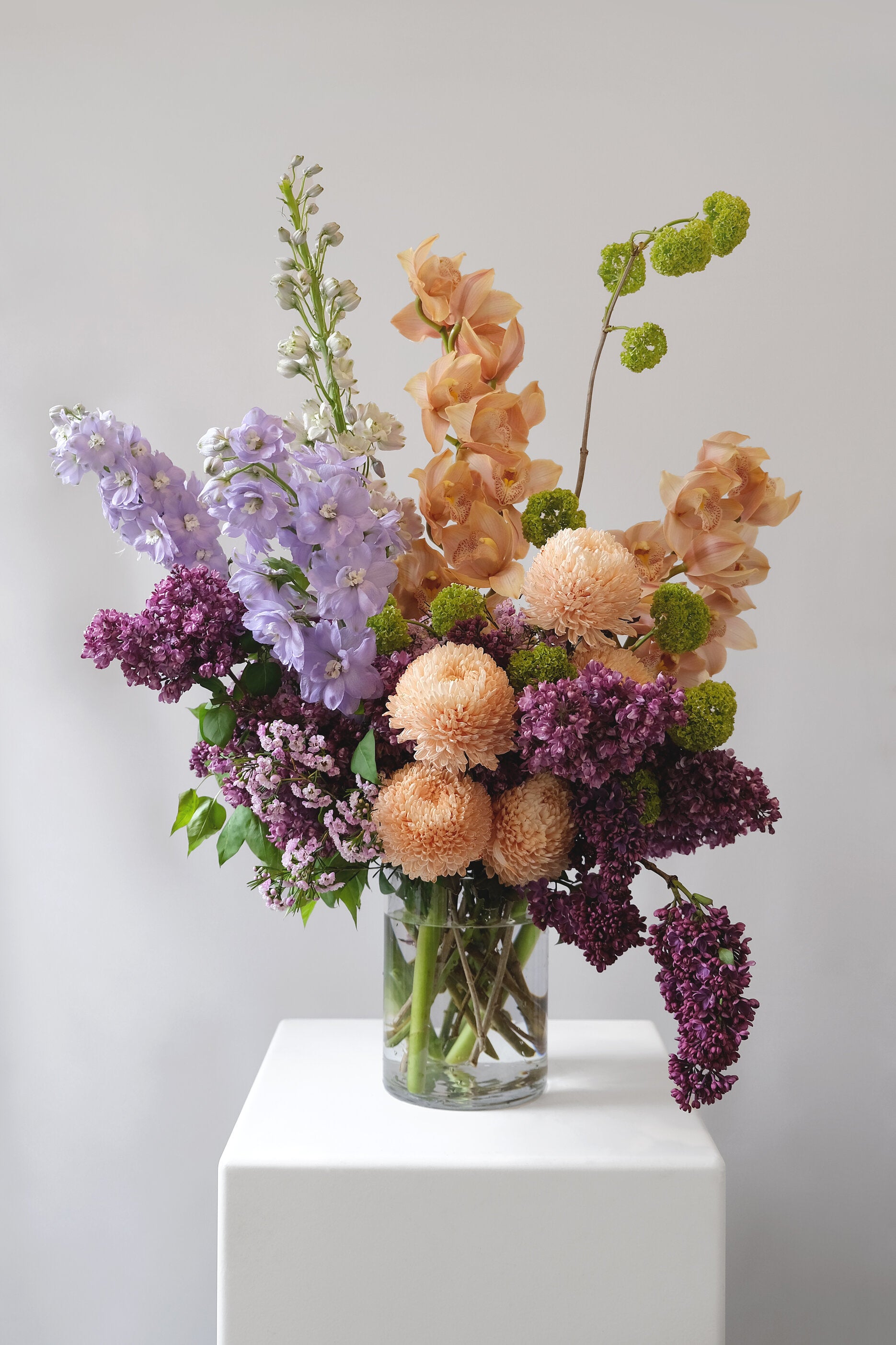 A large vase arrangement featuring premium seasonal flowers and foliage.