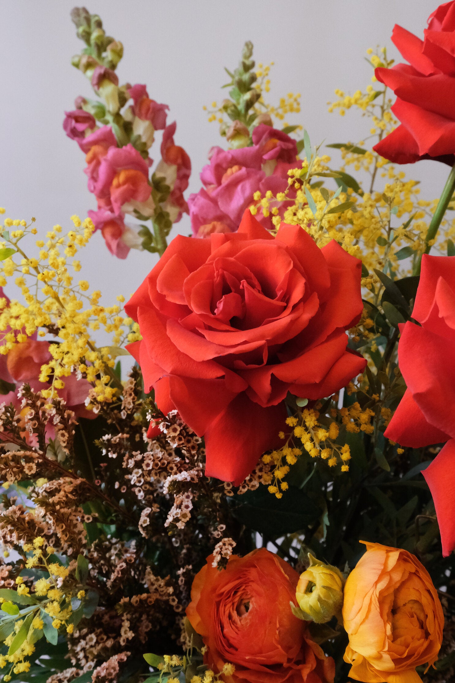 The images provided are for colour and style inspiration for your arrangement. Flower variety and colour tones will depend on season and market availability. Please trust us to select the most beautiful flowers available on your behalf.